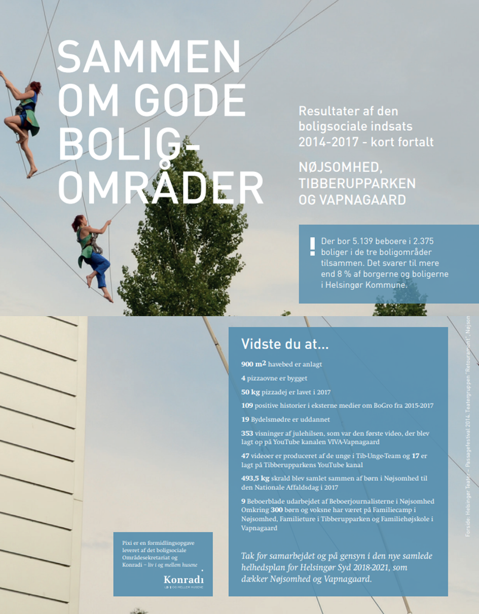 Afslutning af projekt om resultater af den boligsociale indsats i 3 boligområder i Helsingør – i pixiudgave Konradi Previous Next